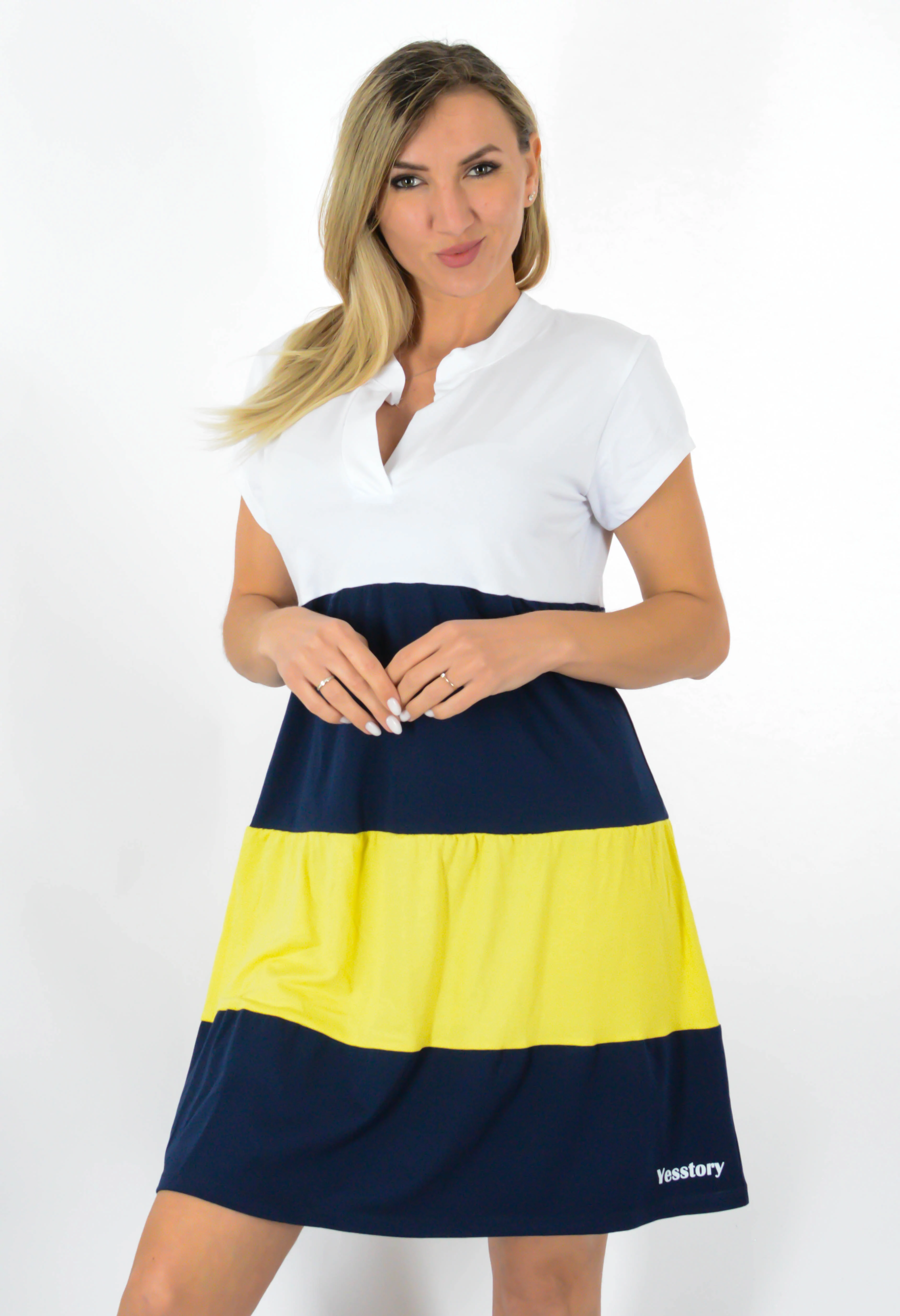 A vonalas(fehér-kék-sárga-kék) 4 színű ruha