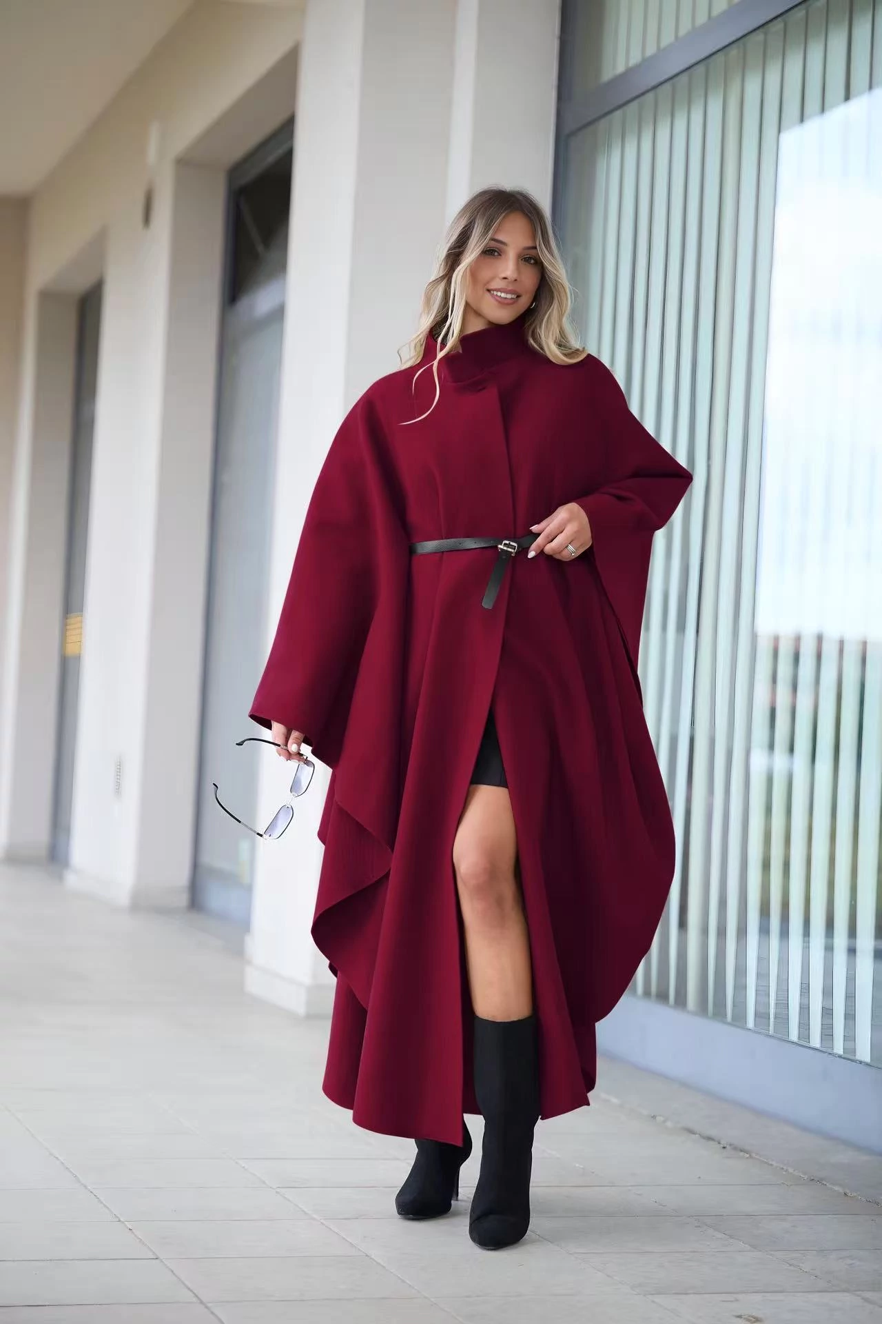 Bordó ,különleges szabású hosszú poncsó