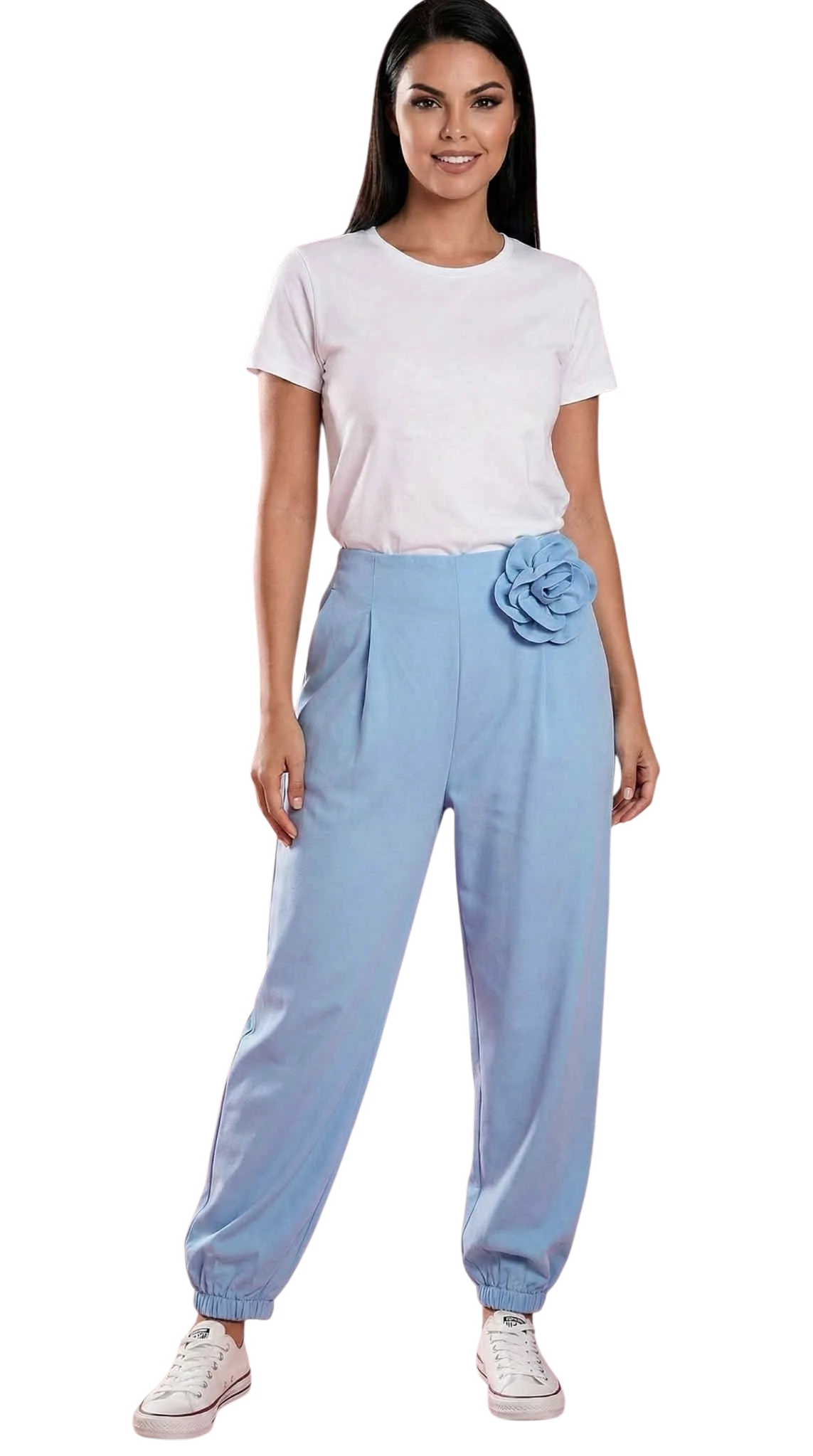 - Bő nadrág virágos díszítéssel