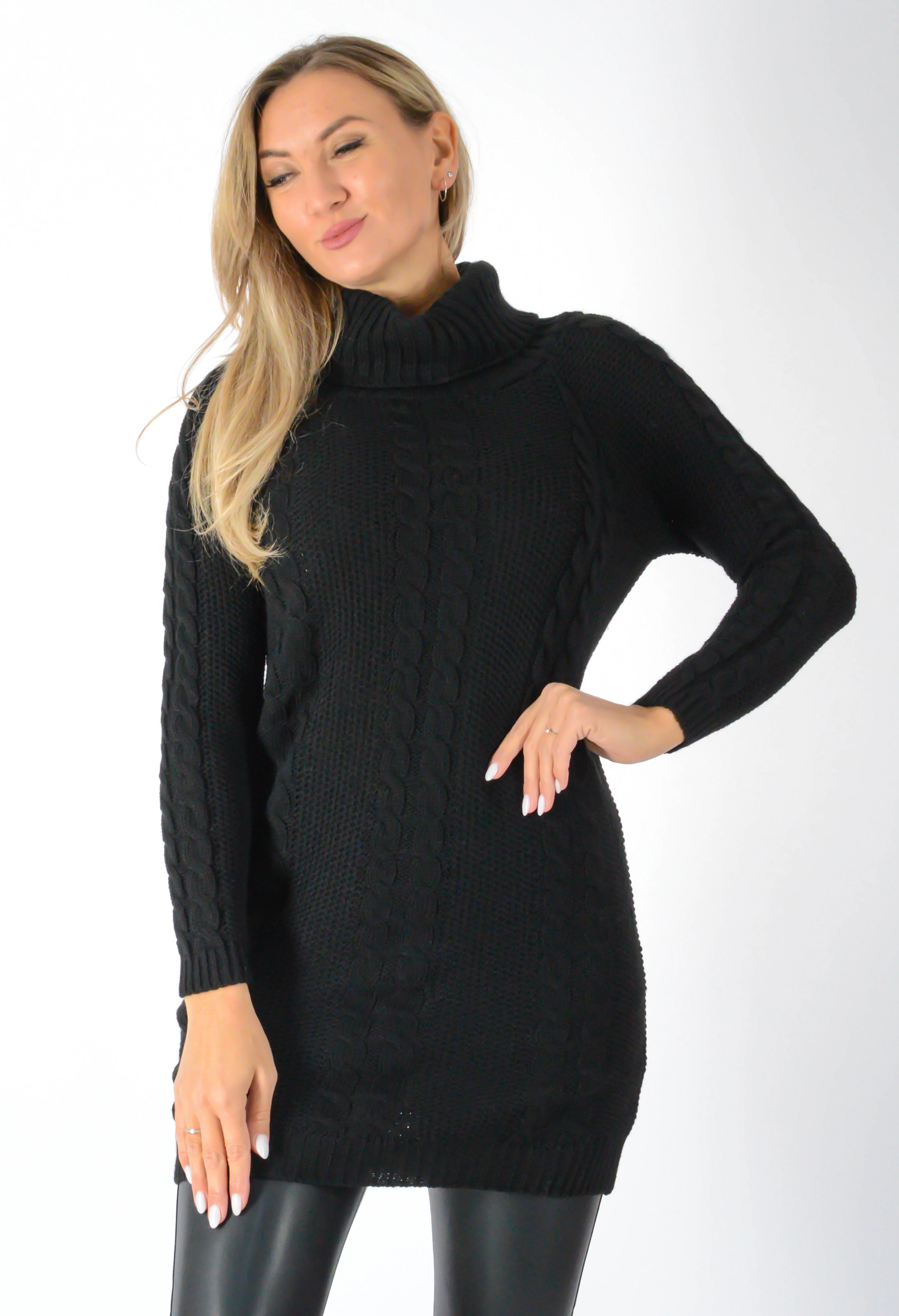 Fekete garbos kötött tunika/ruha