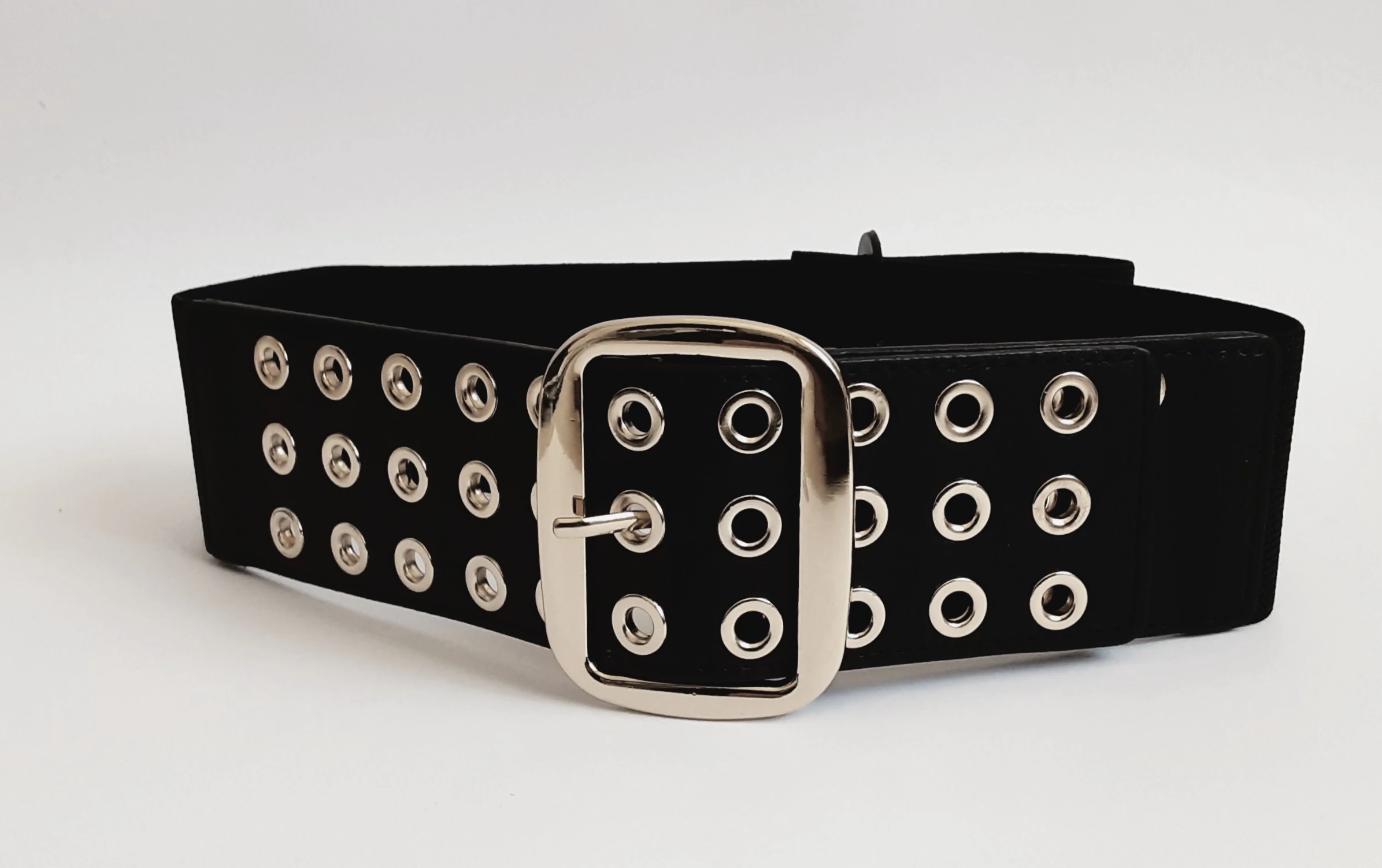 Fekete gumis öv,ezüst színű csattal