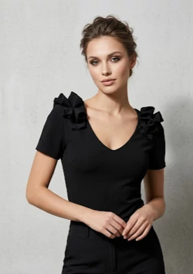 - Fodros vállú dekoltált nyakú felső