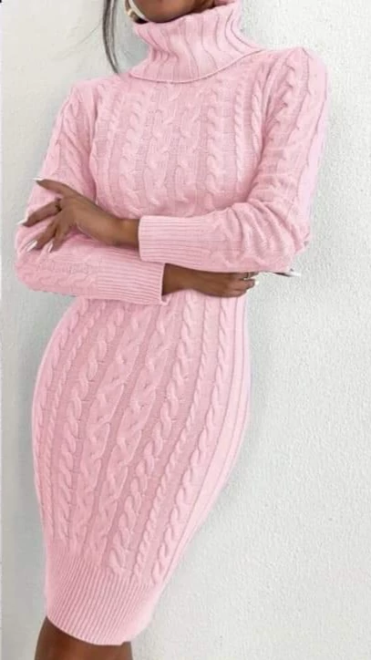 Garbós nyakú rózsaszín ,kötött ruha/tunika