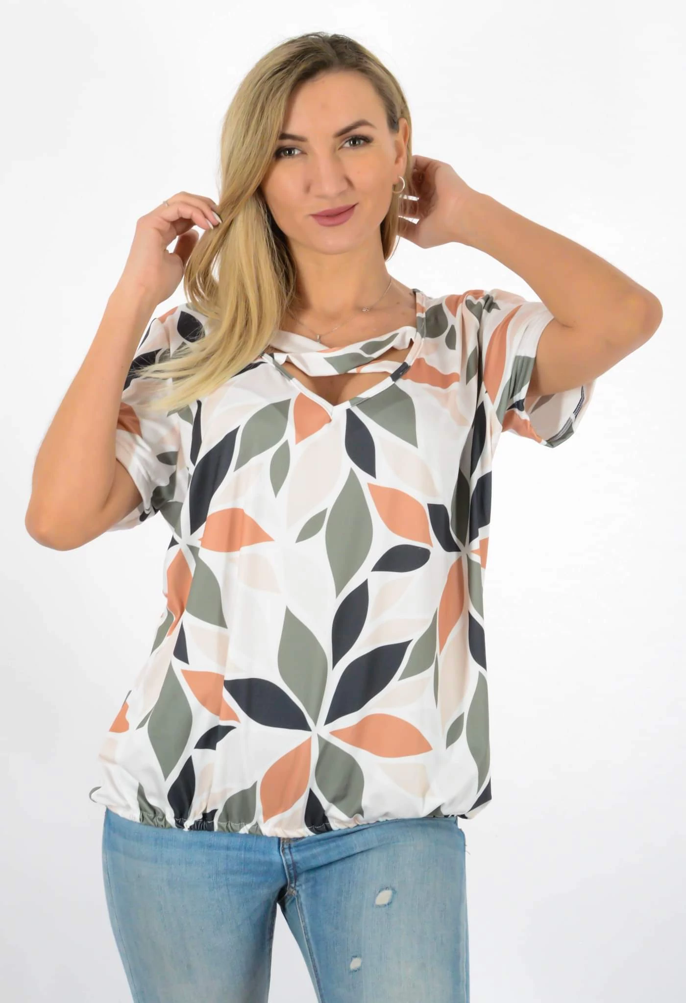 Keresztpántos, átlapolt ,gumis derekú mintás felső