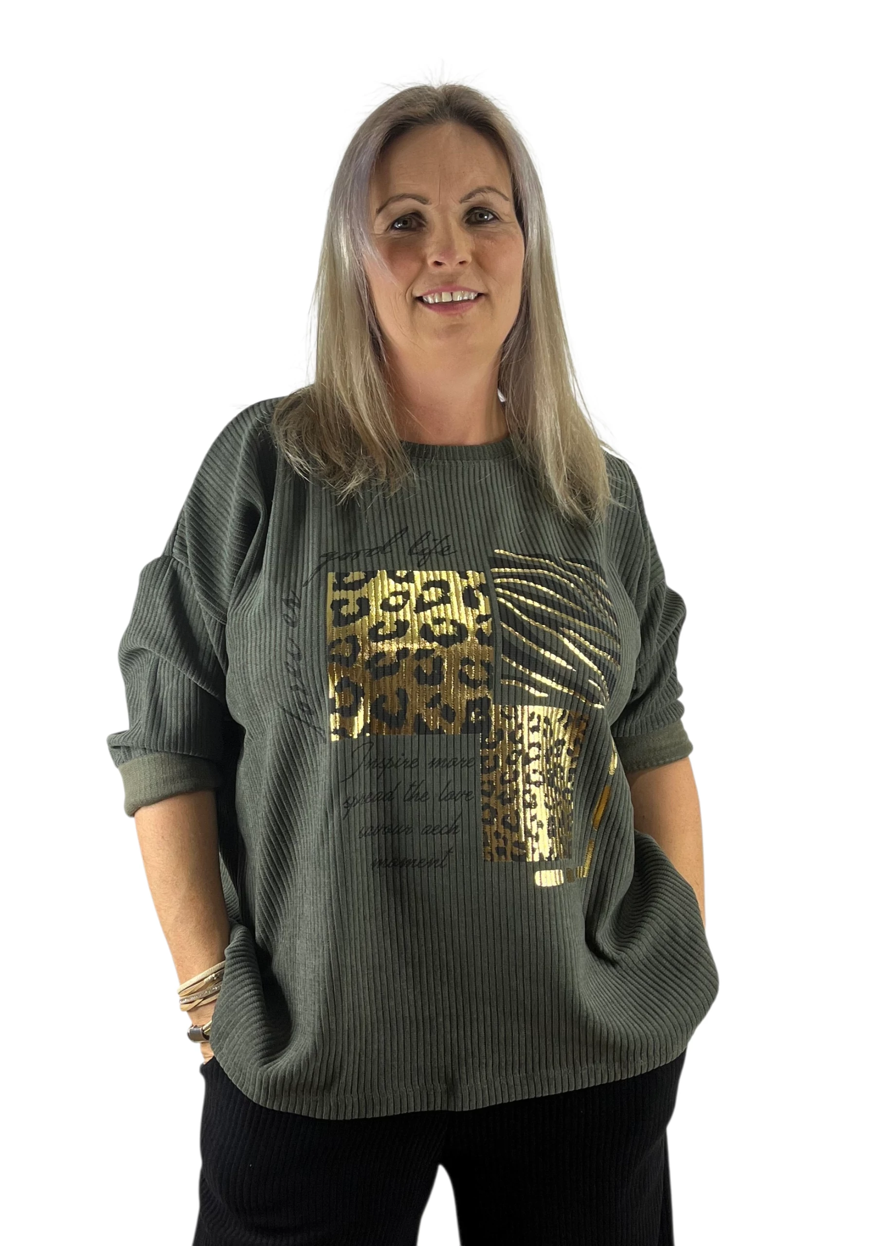 Khakizöld laza felső