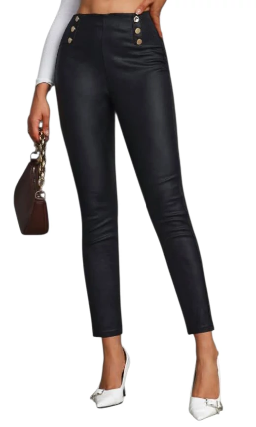 - Műbőr hatású fekete nadrág
