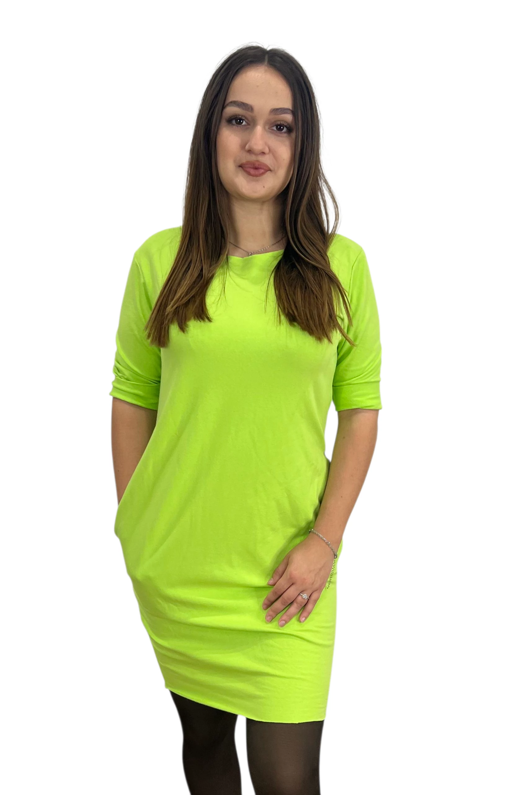 Sophie lézervágott zsebes pamut élénkzöld ruha/tunika